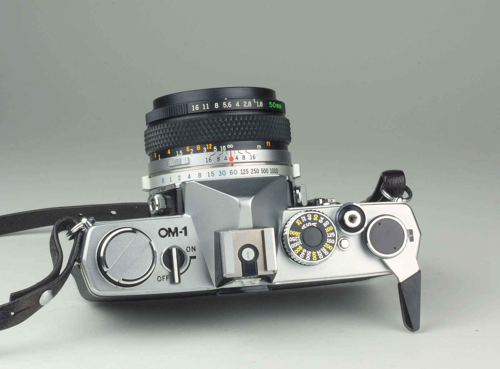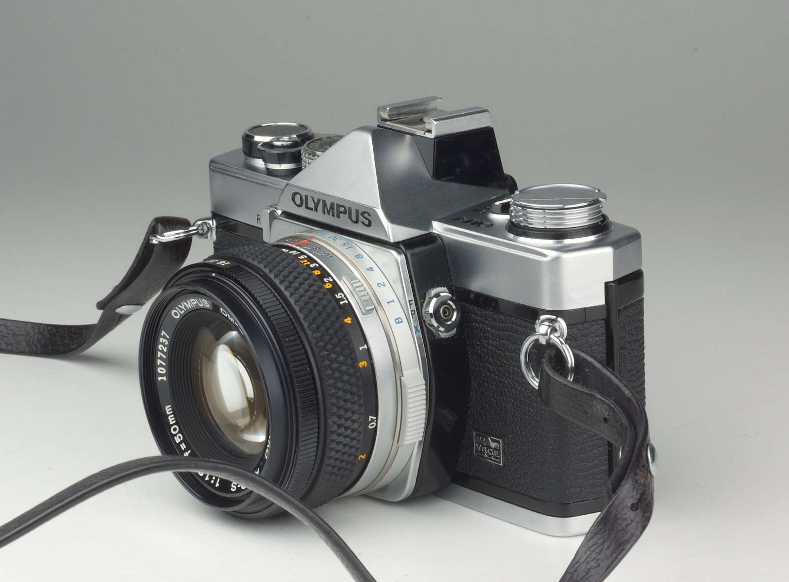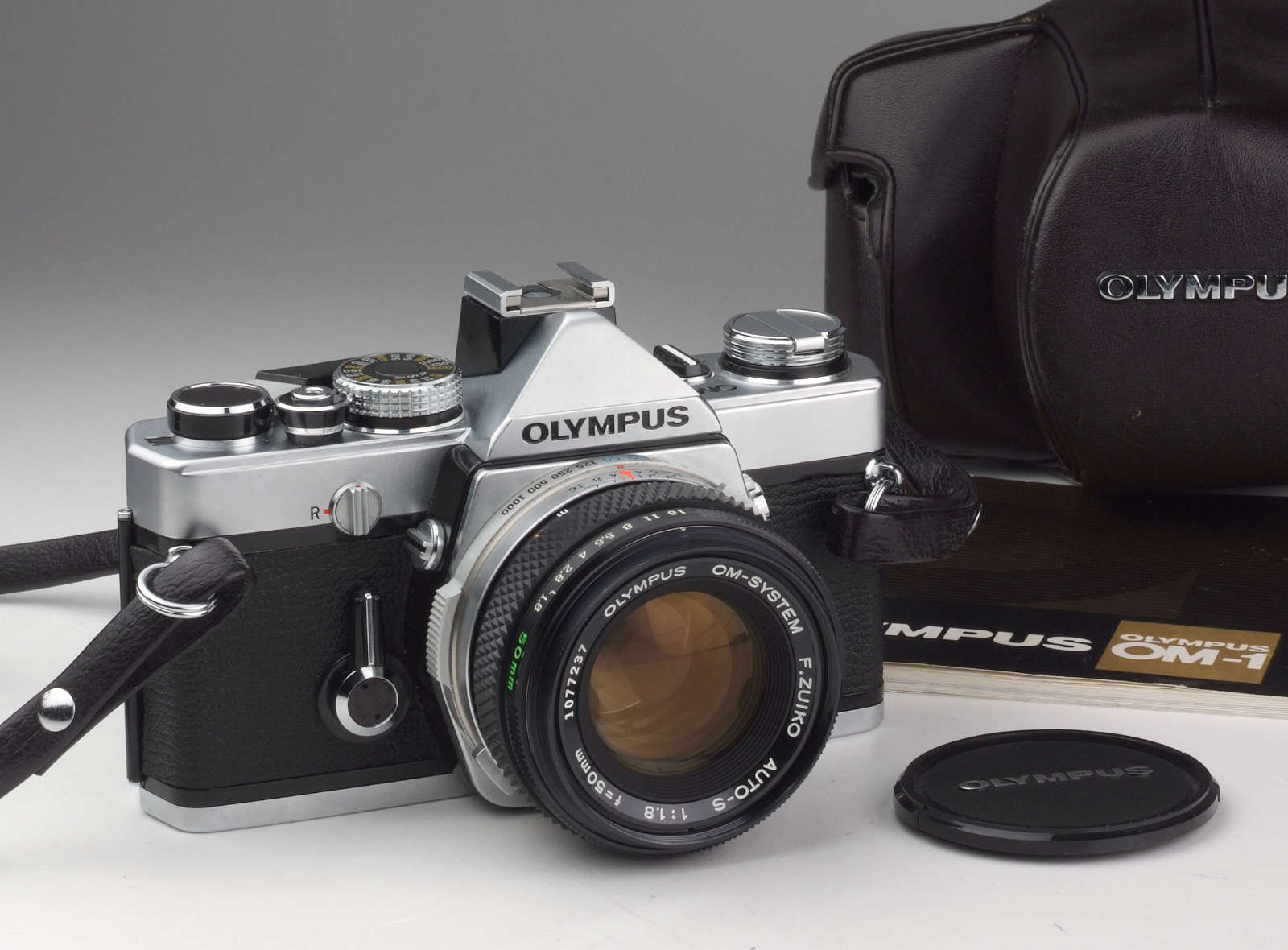 Olympus OM-1 mit Olympus Zuiko 1.8/50mm Standardobjektiv in neuwertigem Zustand.